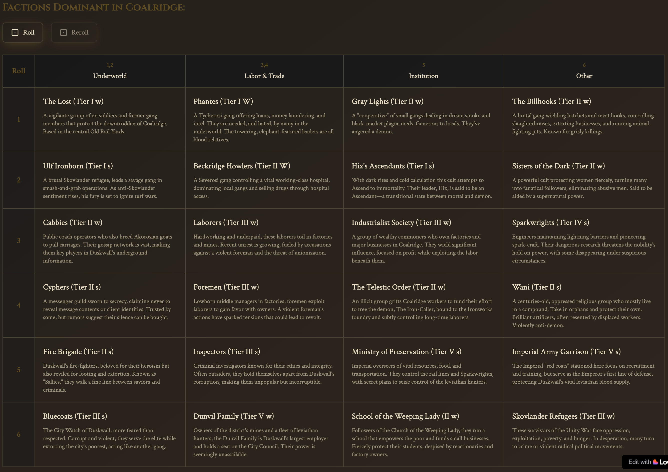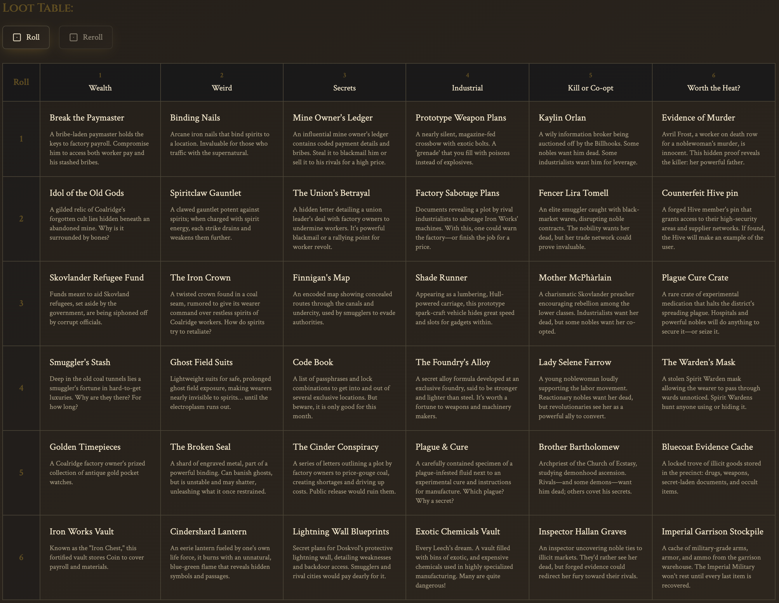 Create industrial horror themed Blades in the Dark™ scores fast with random tables, obstacles, and exportable results.